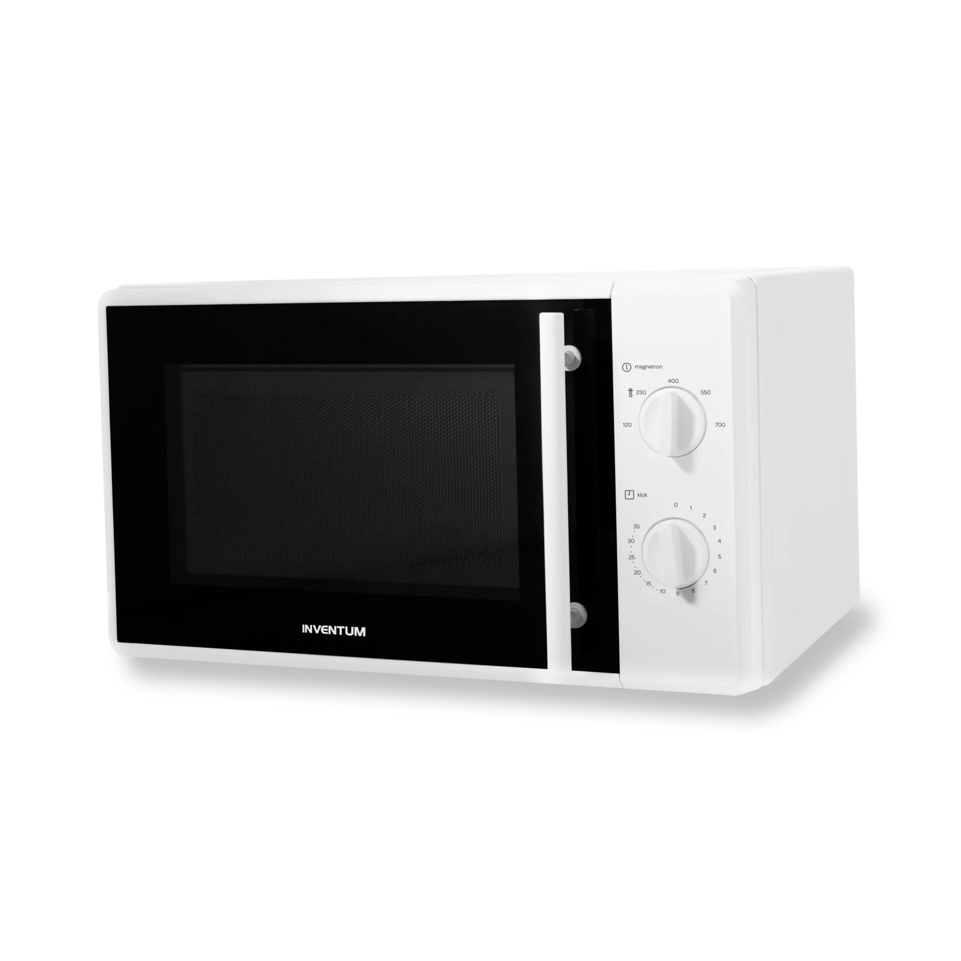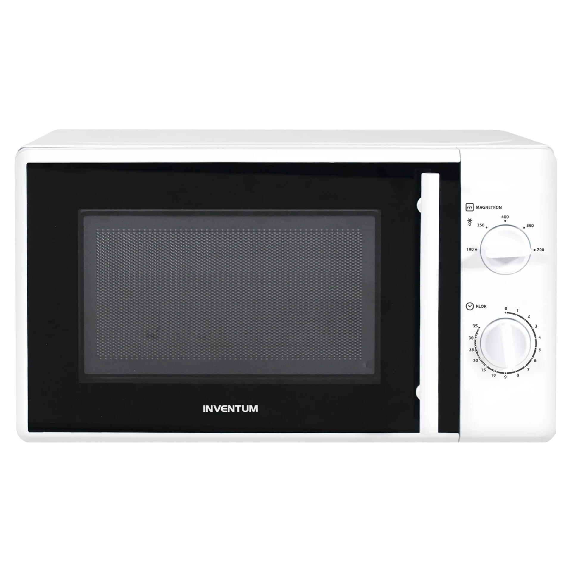 Deze eenvoudige magnetron heeft twee grote draaiknoppen: één voor vermogen en één voor tijd. Geen menu’s, geen ingewikkelde programma’s — gewoon draaien en klaar.